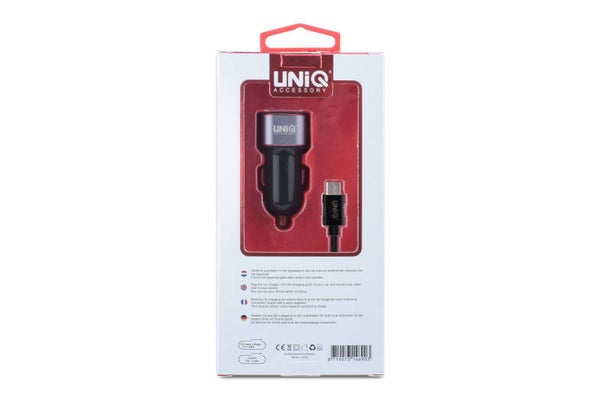 Autolader UNIQ Accesory Dual USB Type-C - Zwart